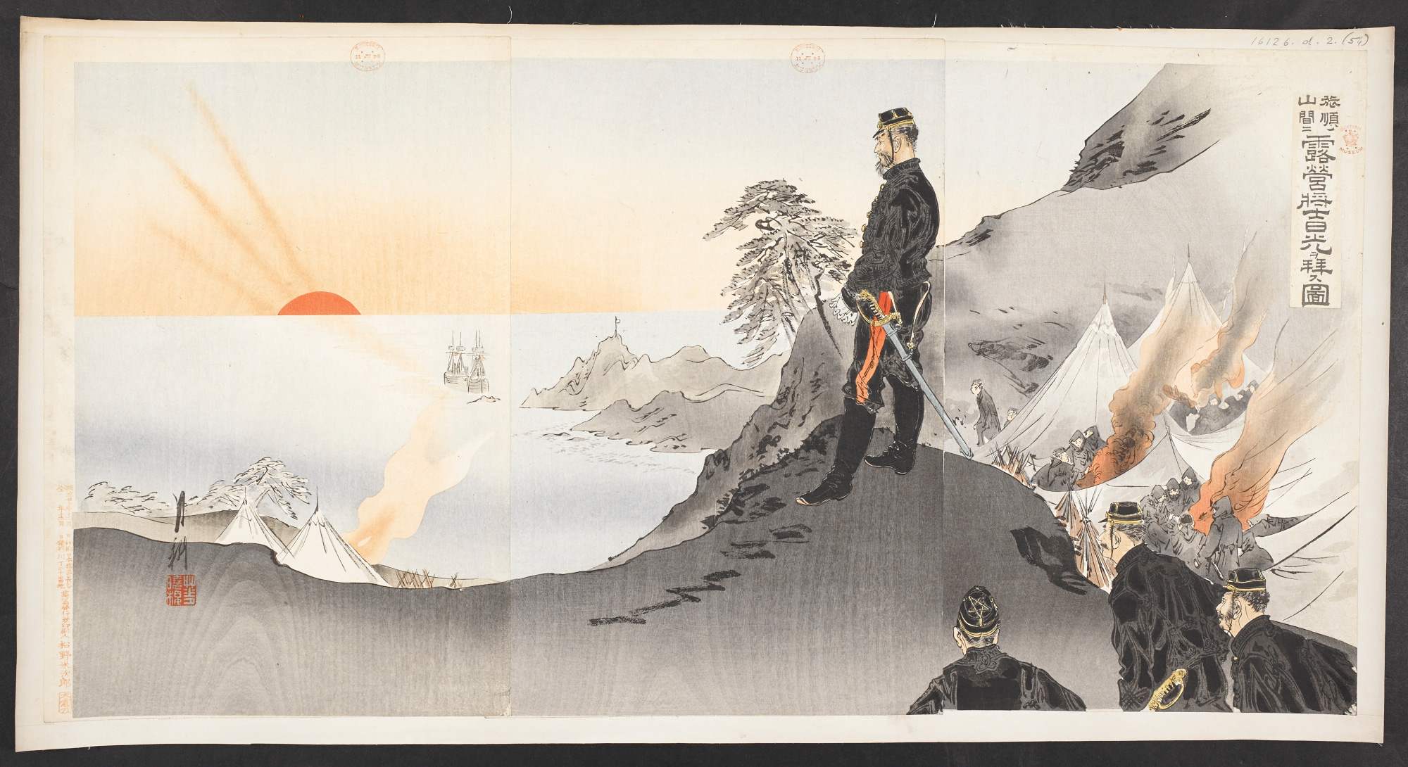 - タイトル: 旅順山間ニ露営将士日光ヲ拝ス図