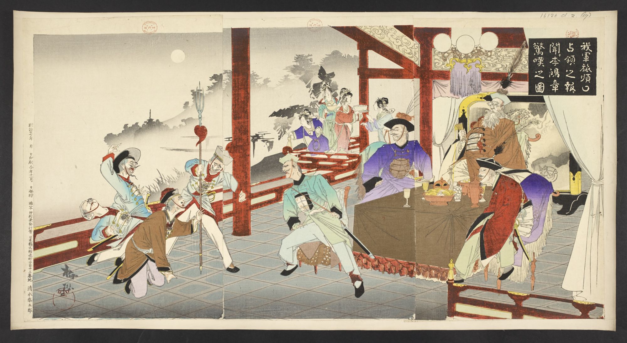 - タイトル: 我軍旅順口占領之報ヲ聞テ李鴻章驚嘆之図