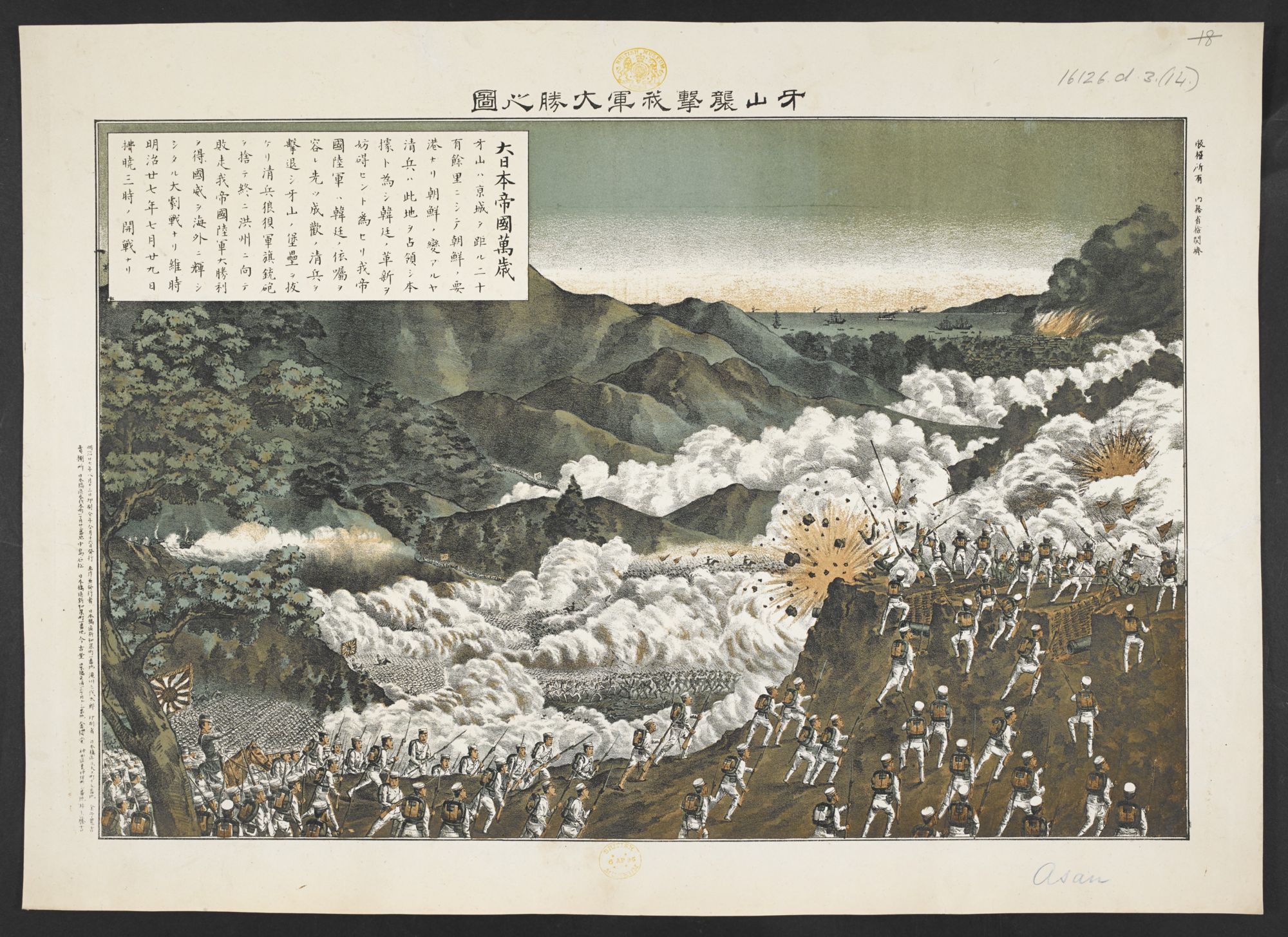 - タイトル: 牙山襲撃我軍大勝之図