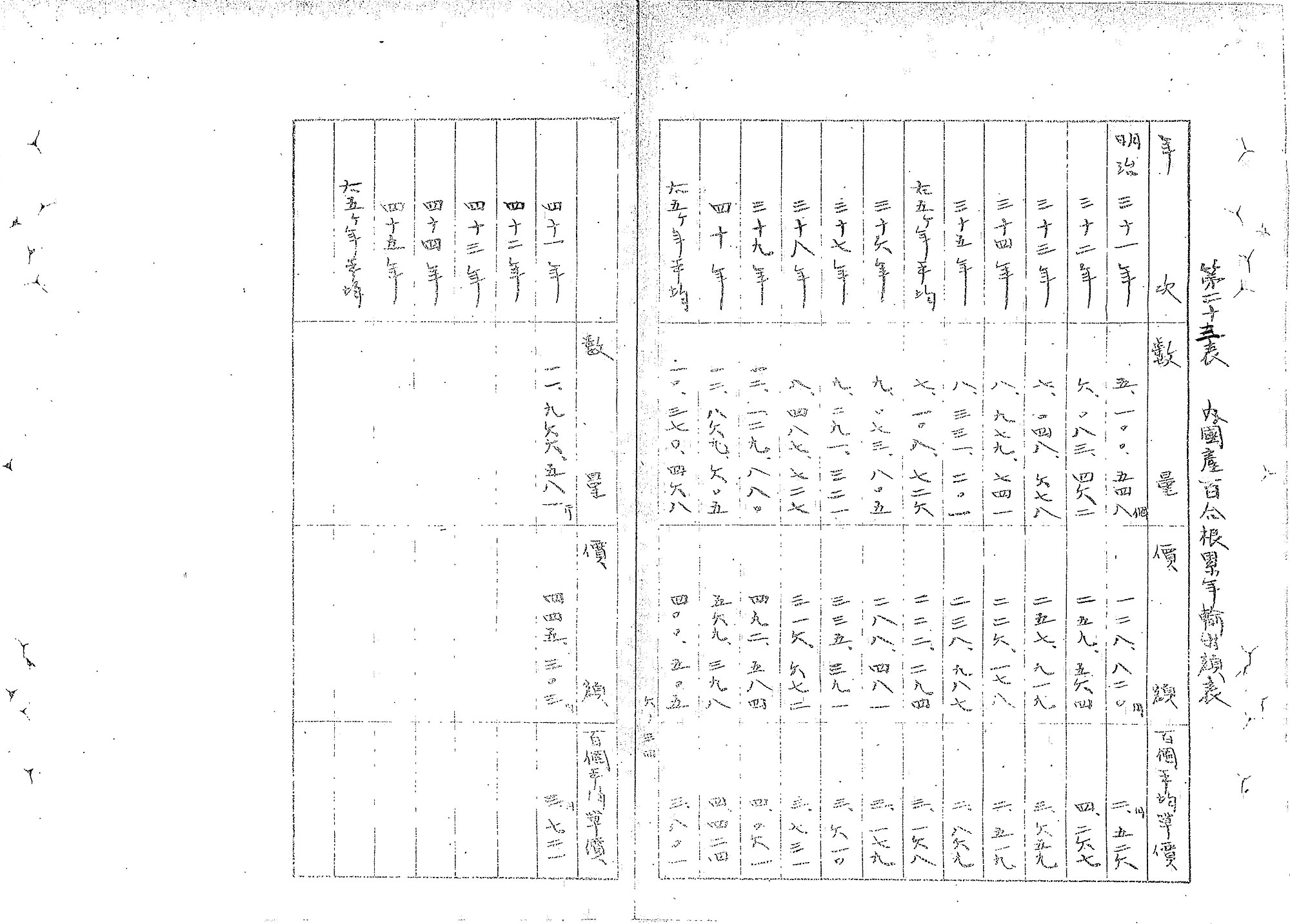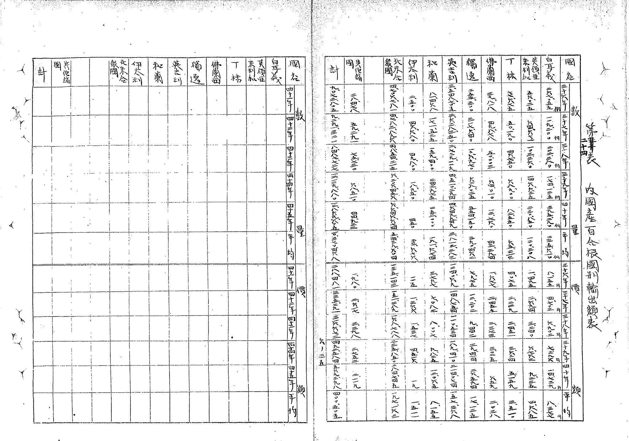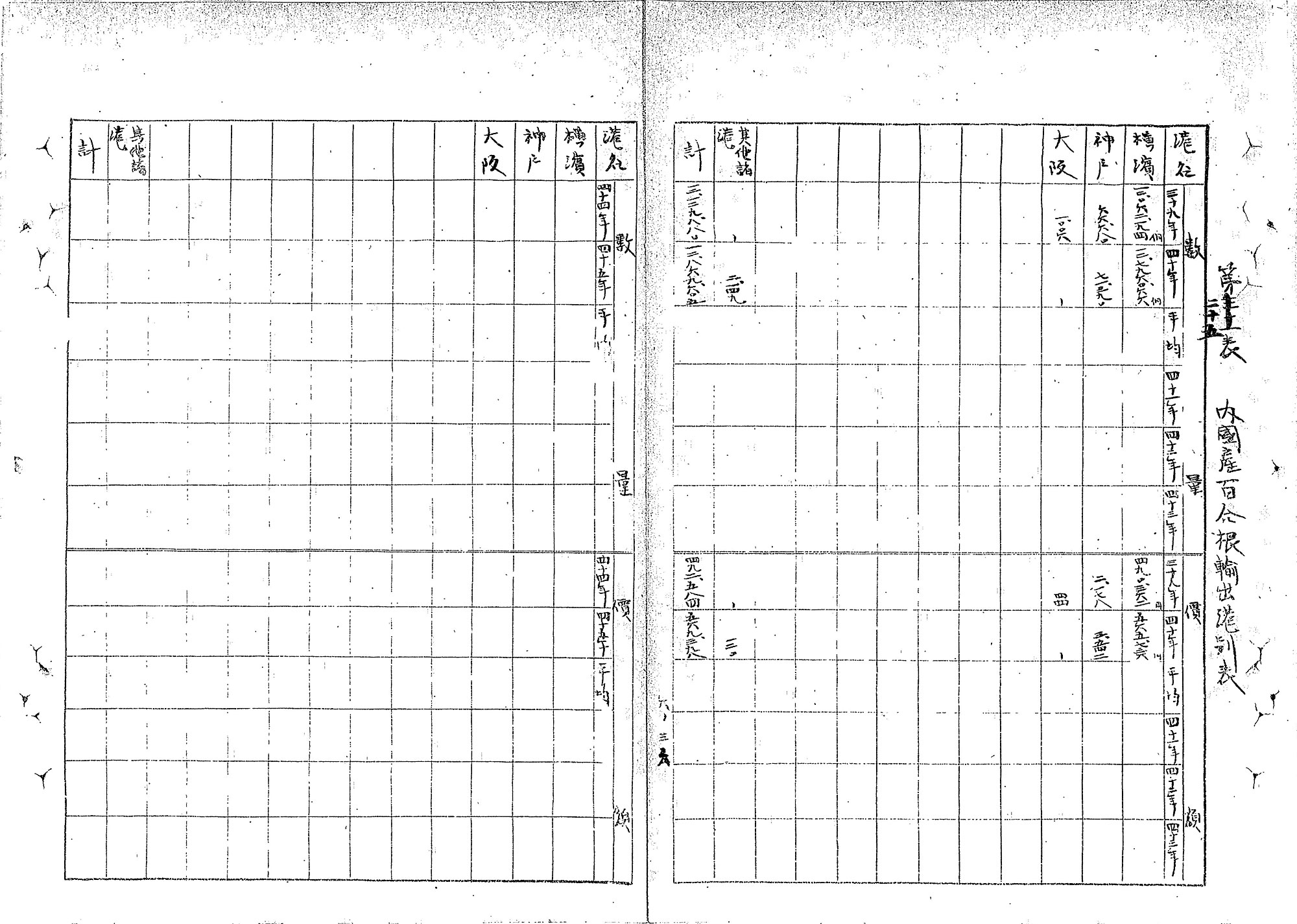 では、どれくらいの量のユリ根が、どの港から、どの国へと輸出されていたのでしょうか。明治42年(1909年)5月に農務局により作成された「園芸農産物の関税に関する調査」を見てみましょう。この資料は、当時の日本政府が、幕末以来結んだ不平等条約により行使できなくなっていた関税自主権を完全に回復することを念頭に、貿易品目ごとに関税制度や税率を調査した際に作られたものです。