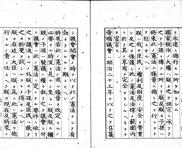 欧米式の憲法には、国民の人権は守られなければならないことと、そのための国家機関の在り方が書かれていますが、大日本帝国憲法では、天皇が国の政治の在り方を決めることとされており、国民の人権は天皇から与えられたものとされていました((2) 大日本帝国憲法前文、1条。)