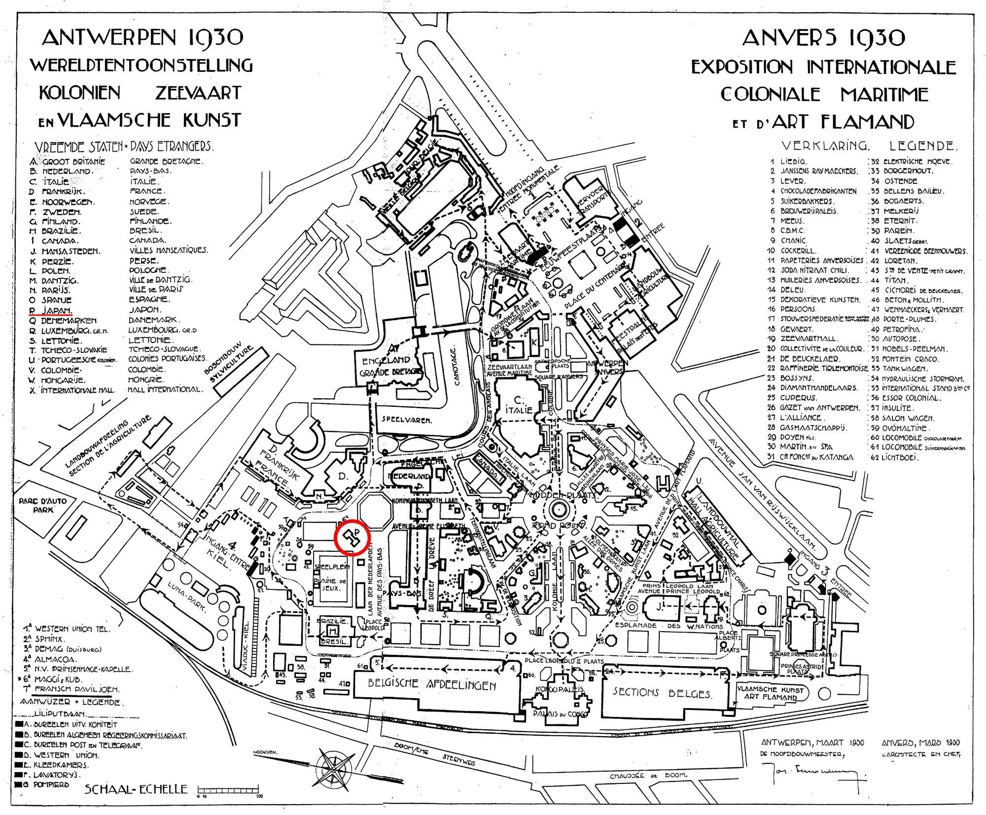 1930年(昭和5年)、ベルギーのアントワープ(アンヴェルスとも言います)で、ベルギー独立100周年を記念する「アントワープ殖民及海洋万国博覧会」が開かれました。この会場では、日本は「日本館」というパビリオンを出展しましたが、これが大変な人気を呼びました。この「日本館」の様子はアジ歴の資料で詳しく見ることができます。