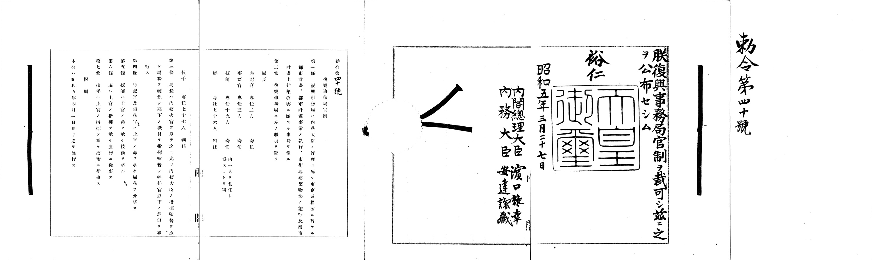 帝都復興記念章創設の4ヶ月前、昭和5年(1930年)4月1日には復興局が廃止され、その業務は内務次官が局長を務める復興事務局に引き継がれました(15)。この復興事務局も昭和7年(1932年)4月1日に廃止され、帝都復興事業は制度として完全に終わりを告げました。