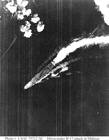 その後、唯一無傷で生き残った「飛龍」も引き続き戦闘を続けますが、午後2時5分にアメリカ軍の攻撃を受け炎上し、飛行甲板が使用不能となりました(8)。ここに日本軍空母の全てが戦闘不能になり、事実上、作戦能力を失うに至ります。ミッドウェーの勝敗はここに決しました。