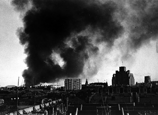 日中戦争・炎上する上海浦東方面(毎日新聞社提供)