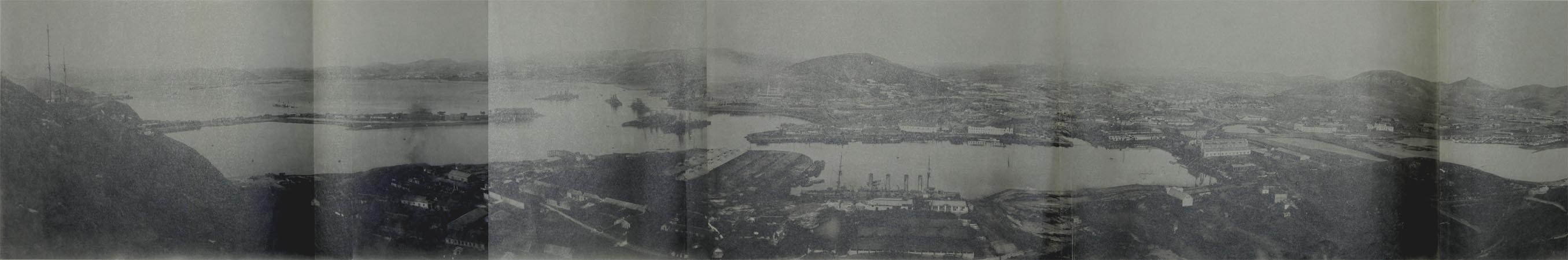 黄金山より見た陥落後の旅順口港内