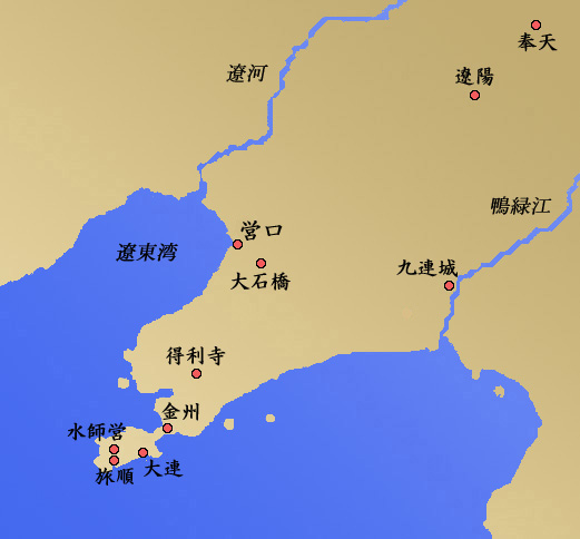 現在の中国遼寧省、遼東半島最南端、大連市街の西にある深水の湾です。