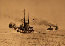 黄海海戦を経て、明治37年(1904年)末に旅順艦隊が壊滅し、明治38年(1905年)1月1日に旅順要塞が陥落すると、開戦当初から日本艦隊の主要な目標であった旅順攻撃は終息を迎え、海での戦いの焦点は、明治37年(1904年)10月半ばにバルト海沿岸のリバウ軍港を出撃して日本を目指していたロシア海軍バルチック艦隊を、日本海軍連合艦隊がどのように迎え撃つかという1点に絞り込まれていました。対馬海峡における三笠の訓練は、来たるべきバルチック艦隊との戦いに備えたものでした。