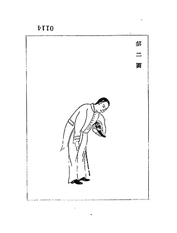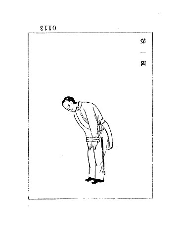 この大礼服は、新年の拝謁や宴会、紀元節、外国公使参朝の節など、非常に格式の高い場で着用されました。このため、大礼服着用時の敬礼の作法も定められていました。 (4)、(5)、(6)、(7) は、文官が大礼服を着た時の敬礼の仕方を図示したものです。