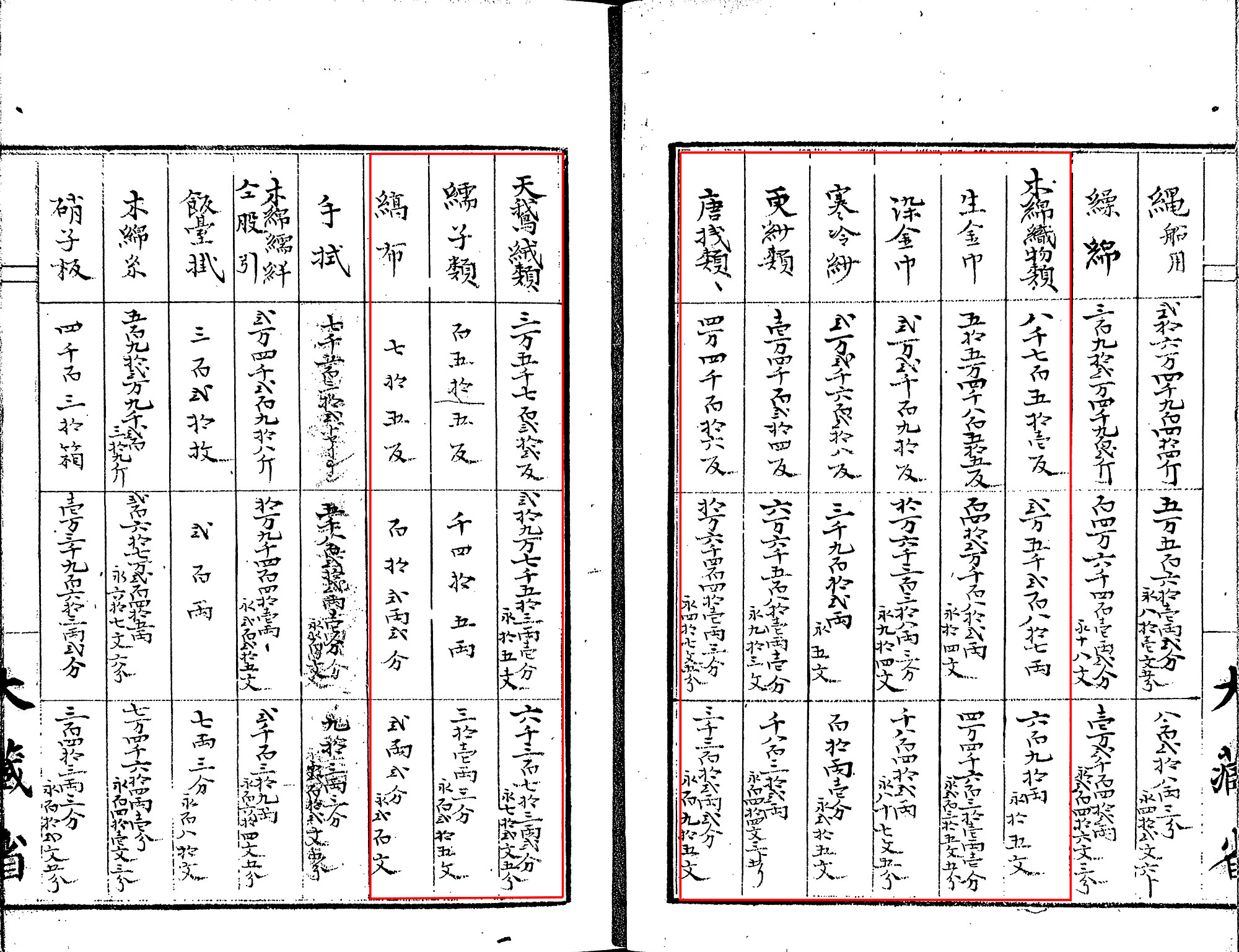洋服は当時はとても高価なぜいたく品だったので、これに手の届かない庶民はそれまで通りに和服を着ていました。ちなみに、「和服」という言葉は、「洋服」が日本に入ってきた時に、これに対する言葉として作られたものです。裕福な町人は、高価な絹織物や毛織物などを服地にした和服を着ましたが、農民は主に綿織物を服地とした簡素な和服を着ていました。しかし、この庶民の和服も、その服地となる織物は幕末維新期にダイナミックに変化していました。開港後、西欧製品の参入によって、モスリンや金巾のような輸入織物が和装ファッションに浸透して、庶民にも多様な用途において用いられるようになっていました。 (9)、(10)、(11) は、明治2年度(旧暦)に日本の各港で輸入された物品を示した表です。ここからは、いろいろな織物が輸入されていたことがわかります。(9)は綿織物類、(10)は麻織物類、(11)は毛織物の輸入数量をそれぞれ示しています。