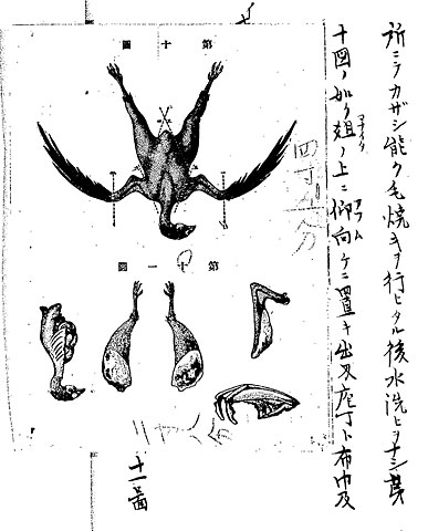 この冊子のタイトルは、まさに『軍隊料理法』です。明治43年(1910年)に陸軍内で配布されました。 (9) (10) は、魚のさばき方、 (11) は鶏のさばき方、(12) は魚やエビの焼き方です。このように、さまざまな料理法が紹介されていますが、そもそも、なぜ兵士にとってこれほどのレシピ本が必要だったのでしょうか。