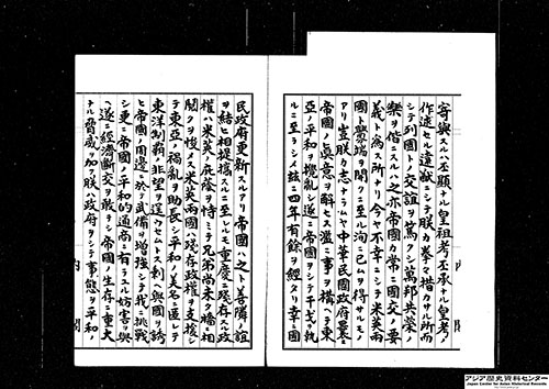外交史料館所蔵の簿冊「大東亜戦争関係一件/大東亜会議関係」( B02032955600)には、各国の演説内容をはじめ、同会議関係のさまざまな資料が収められています。「3.調書/3」「3.調書/4」( B02032958100、B02032958200)からは、各参加国との事前交渉や、会議に対する各国・地域の記事・論調などをうかがうこともできます。