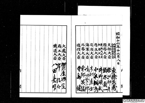 日米対立が深まるなか、戦争回避に向けた日米交渉が続けられましたが(関連コンテンツ: 公文書に見る日米交渉)、1941年12月8日、対英米開戦が宣言されました。