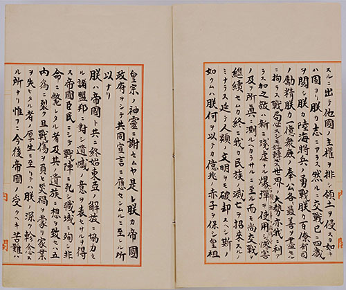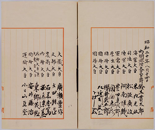 「御署名原本・昭和二十年・詔書八月十四日・大東亜戦争終結ニ関スル詔書」(Ref. A04017702300)1~4画像目