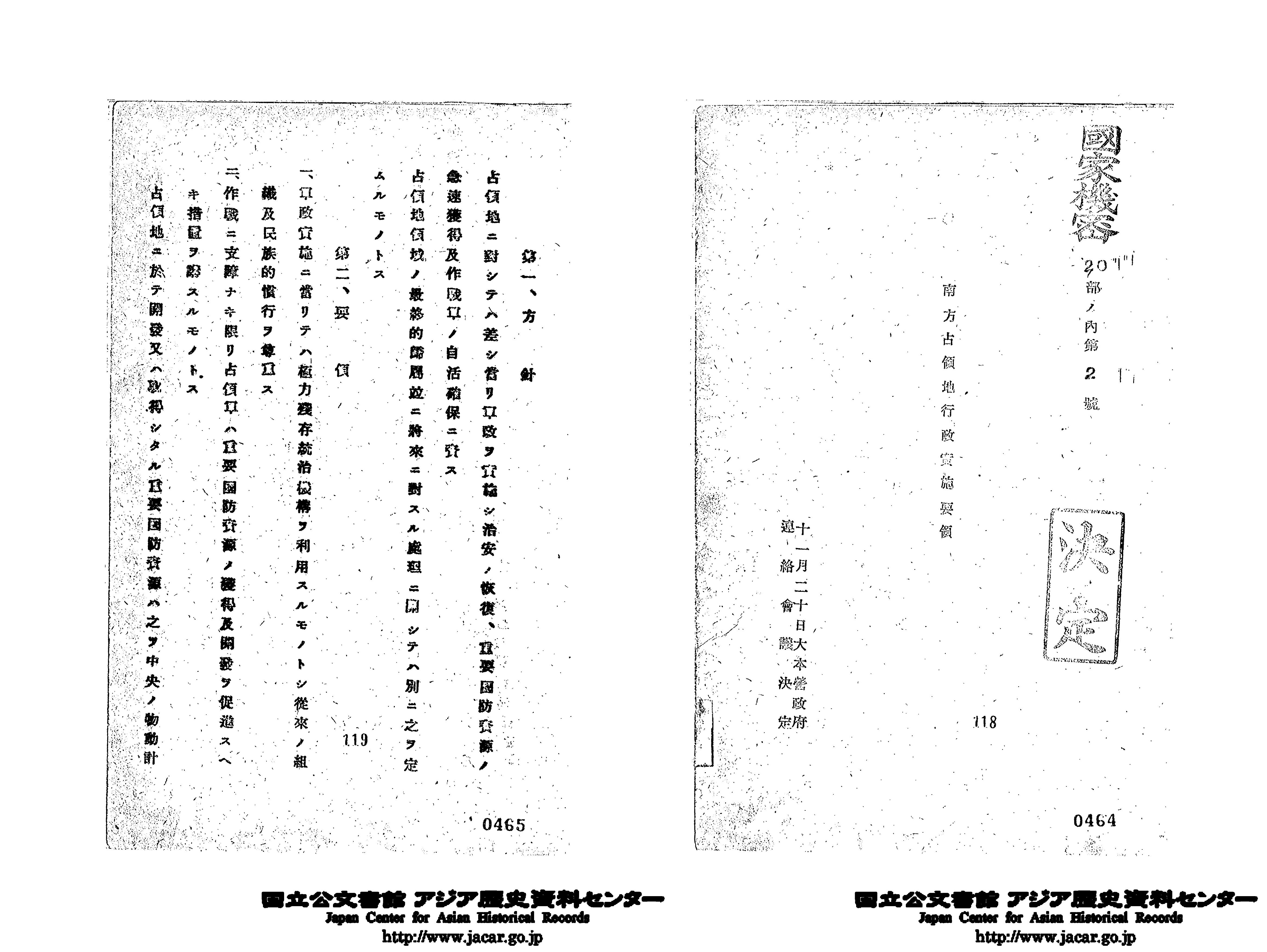 「南方占領地行政実施要領 11月20日」(Ref. C12120209400)1~5画像目