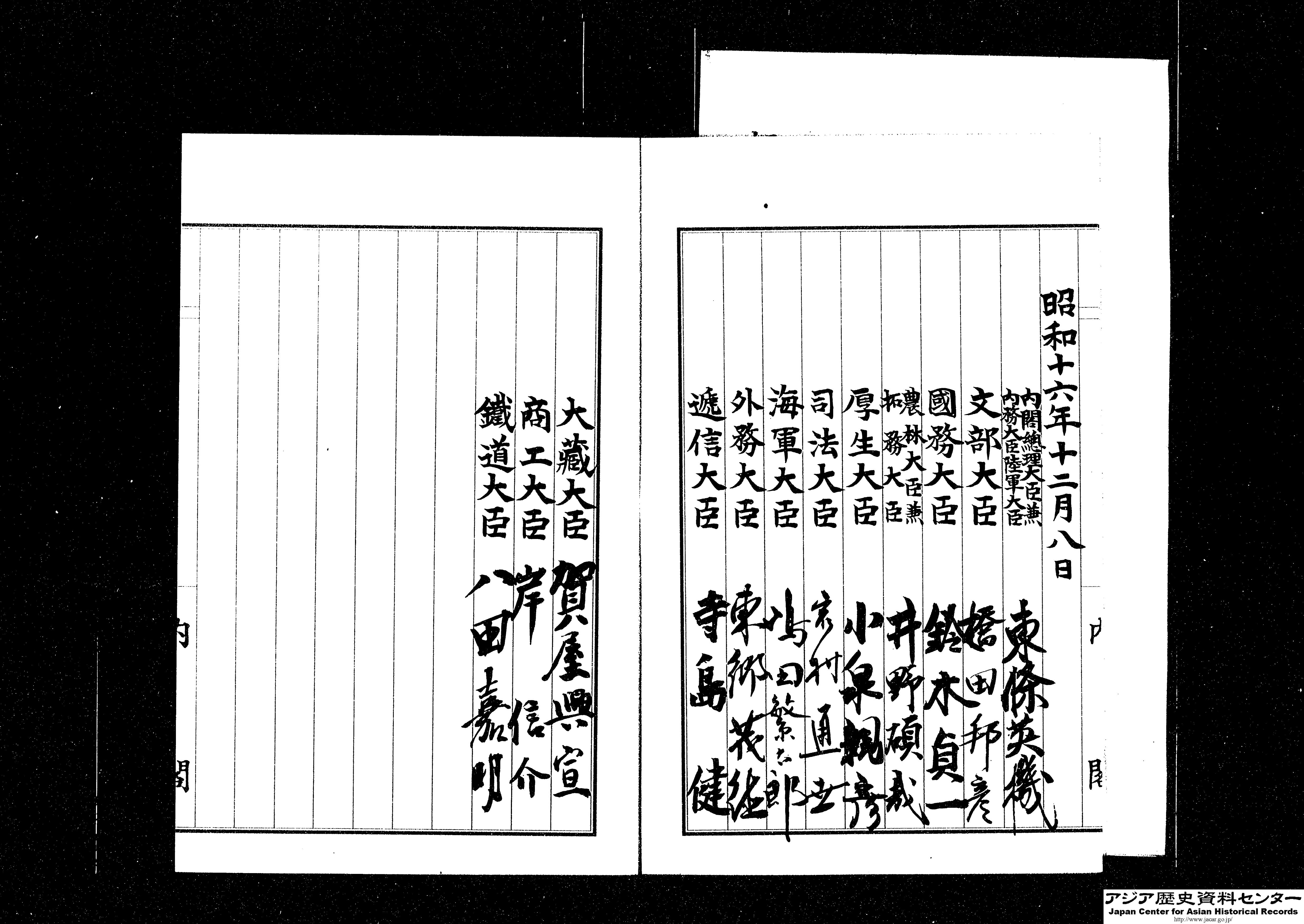 「御署名原本・昭和十六年・詔書一二月八日・米国及英国ニ対スル宣戦ノ件」(Ref. A03022539800)1~4画像目