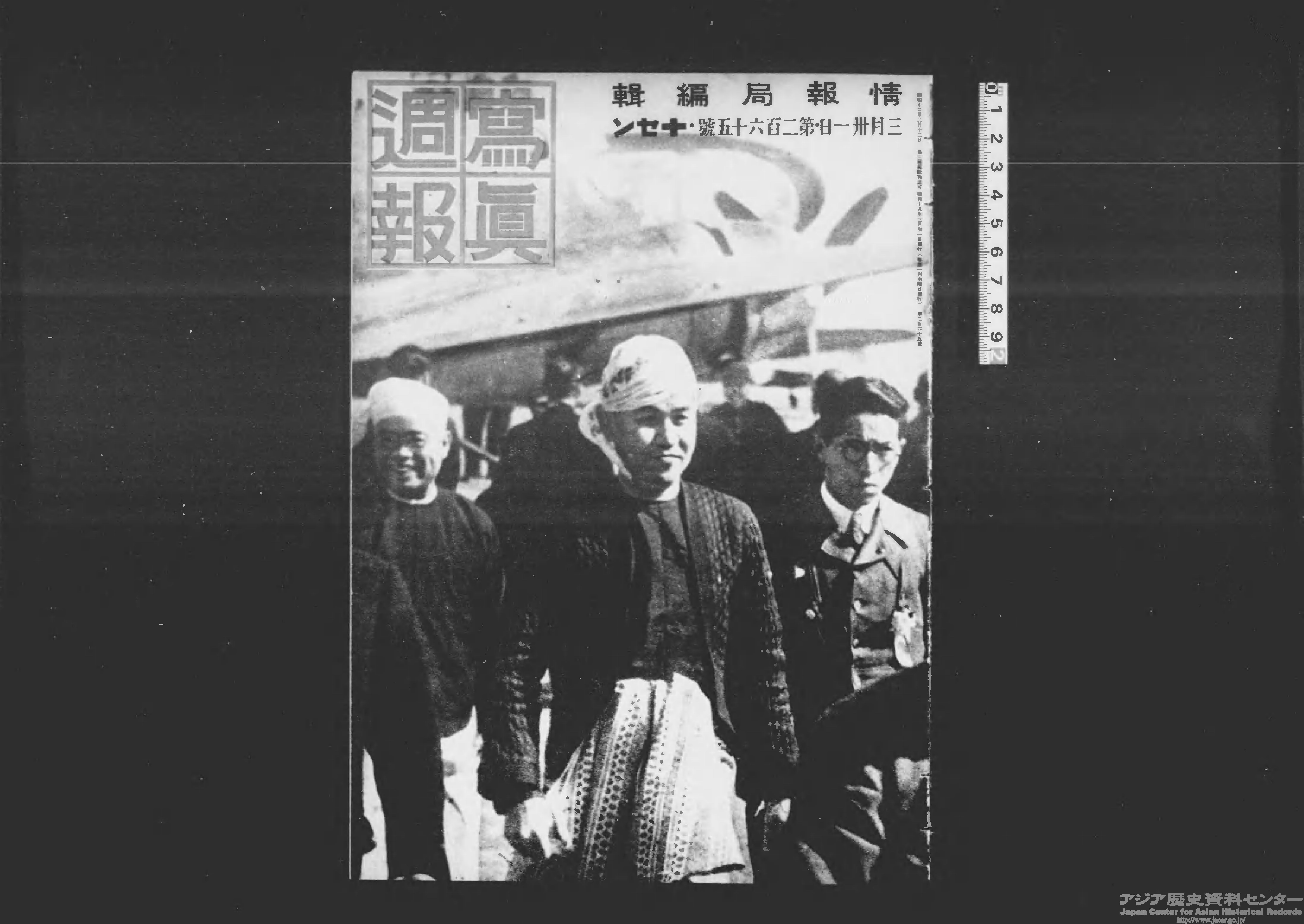 1943年3月、ビルマのバー・モウ長官が来日し、ビルマ独立について協議しました。『写真週報』3月31号は表紙で、4月7日号では誌面でこれを報じています。