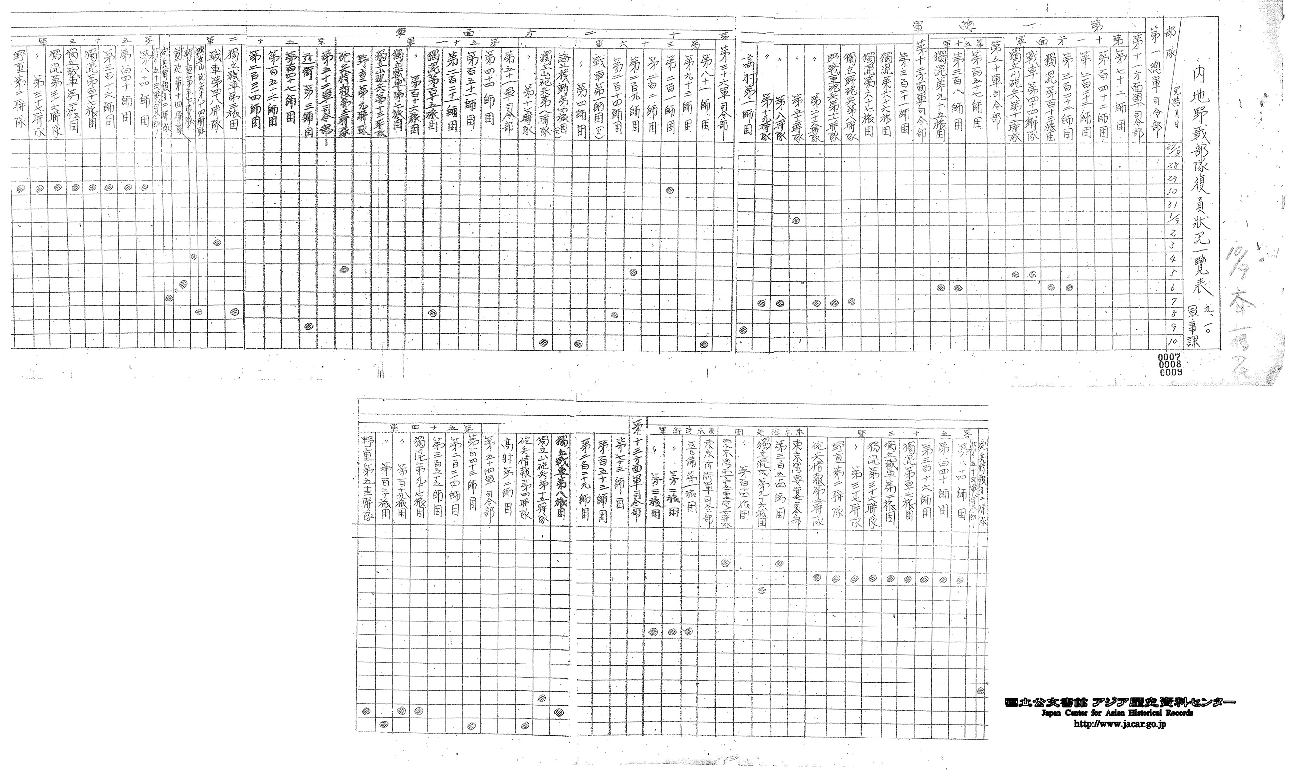 なお、本章でご紹介する資料は当センターデータベースで公開している資料を対象としています。復員に関する資料(特に海軍復員資料の多く)は厚生労働省が保有しております。また、防衛研究所が所蔵する終戦処理関係資料などもまだアジ歴に提供されていないものが多数ありますので、閲覧を希望される場合は他機関所蔵資料をご参照ください。