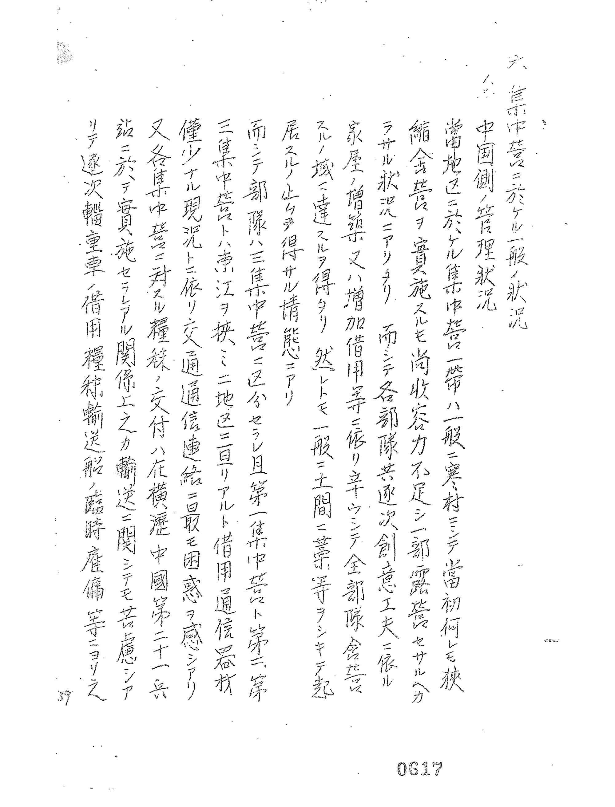 まず輸送については、国民政府側が船舶や鉄道をできうる限り運行し、【資料5-8】にあるように「超驚異的圧縮搭載」を行うことで実現しました。こうして輸送された人々は、軍民共に各地の大都市(とくに沿岸部)に設置された集中営という収容所に集められ、管理されることになります。この集中営では、中国に古くからある「保甲制」という組織制度を適用することで、管理の効率化が図られたことが特徴的でした。【資料5-9】には恵州(現在の広東省)に設置されていた集中営の生活について記されており、その管理状況がうかがえます。同資料からは、集中営の収容力がなく「土間ニ藁等ヲシキテ起居スルノ止ムヲ得サル情態」であることや、食料の調達に際して、商人との価格交渉を行っていたことがわかります。
