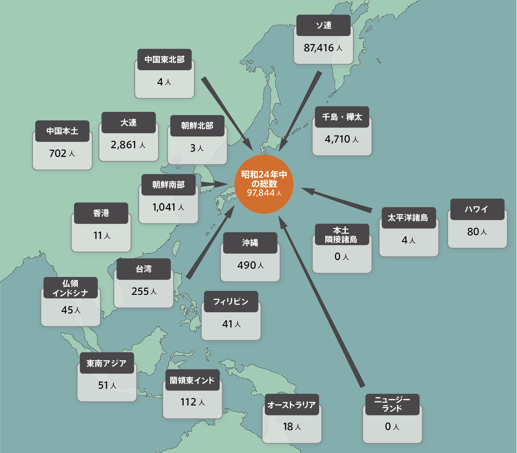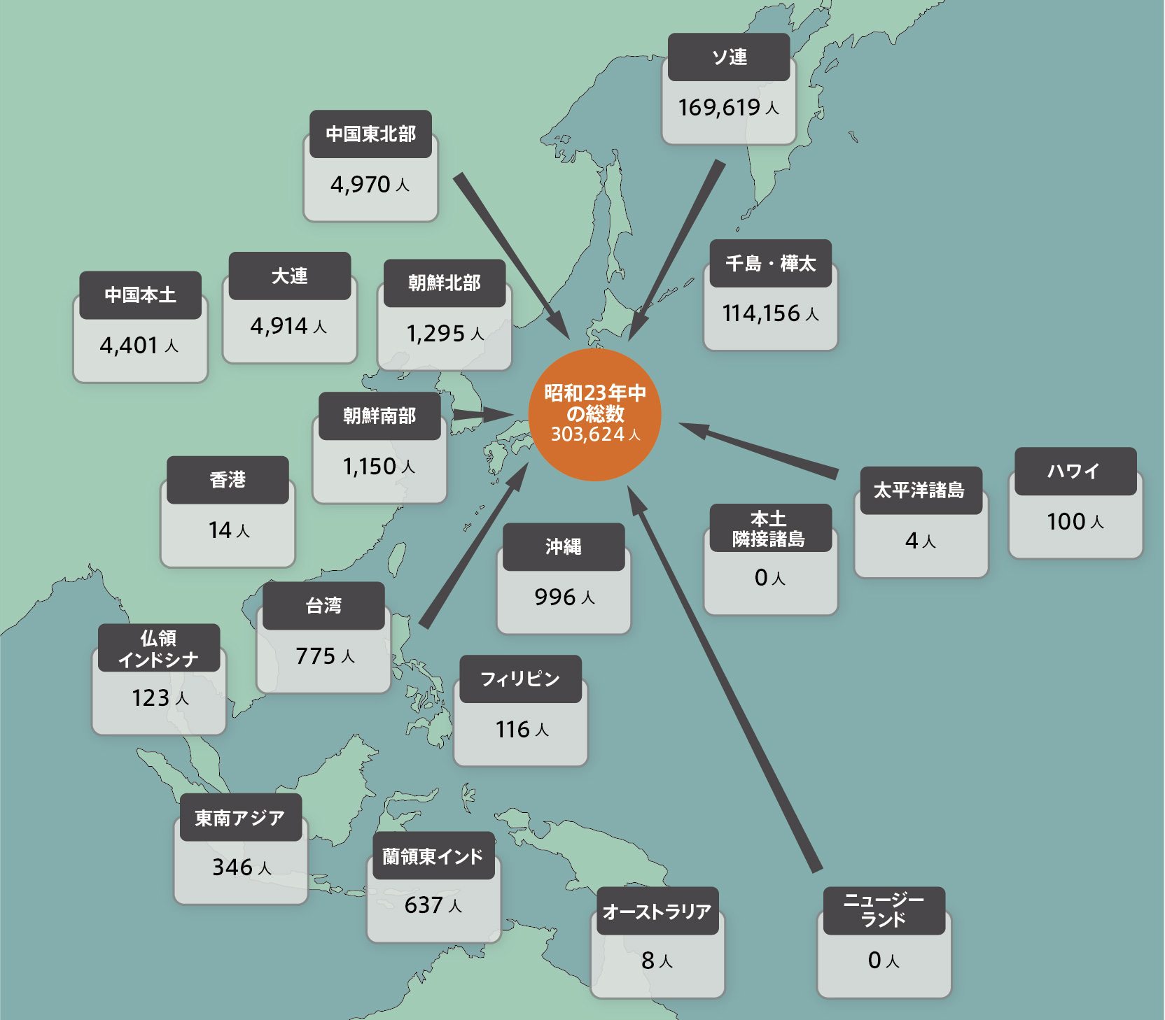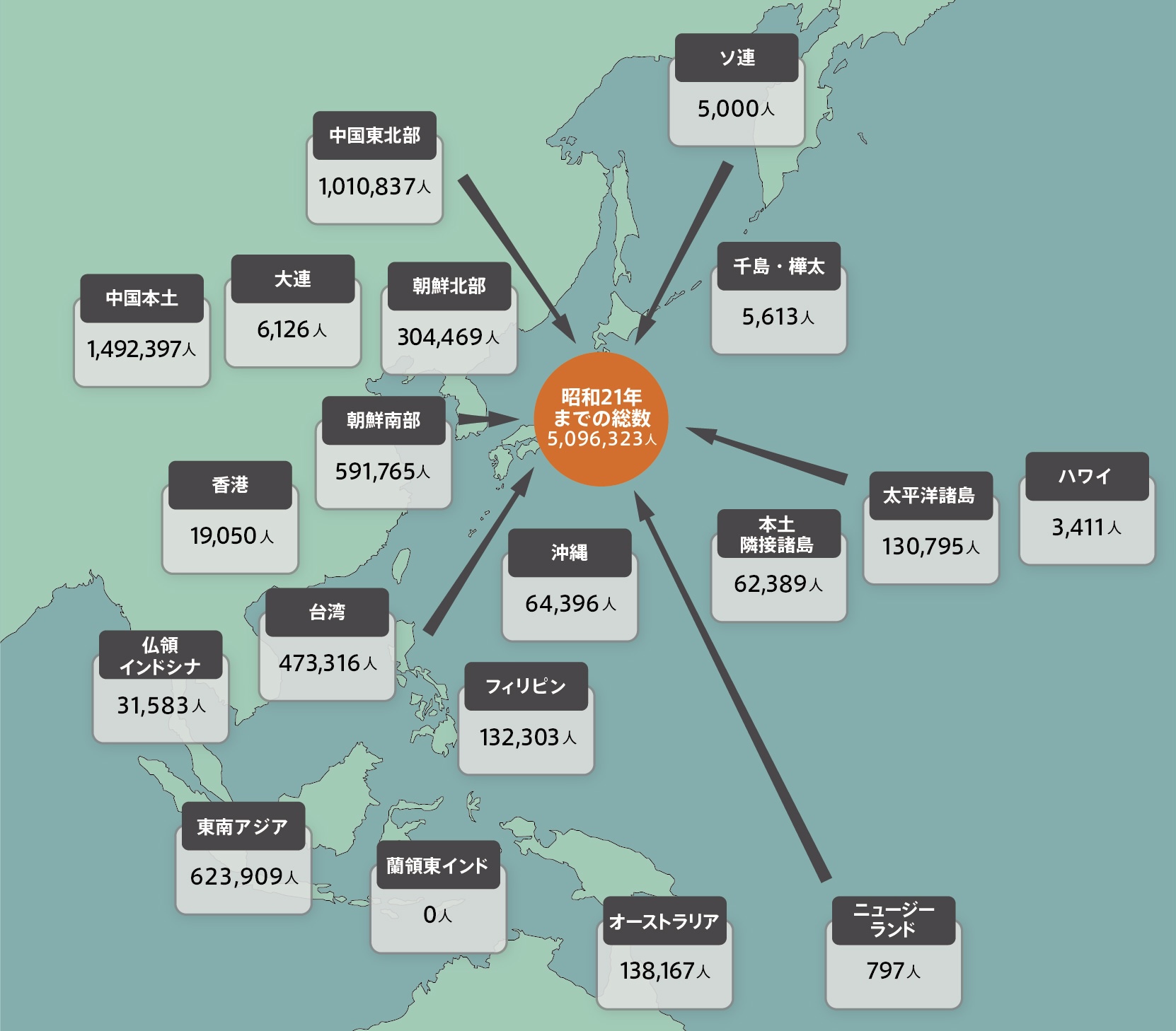 1945年8月15日正午、ラジオから流される昭和天皇の肉声を通じて、日本の敗戦・降伏が国民に伝えられました。ここに日本政府は直ちに2つの難題に直面しました。1つは広大なアジア太平洋地域に展開していた陸海軍の復員・帰還という問題でした。もう1つは海外日本人の引揚という問題でした。当時、「外地」と呼ばれた朝鮮、台湾、満洲、南洋群島等が敗戦によって一挙に失われたからです。また、「日本臣民」として位置づけられていた朝鮮人や台湾人など異民族の処遇という難問も待ち構えていました。