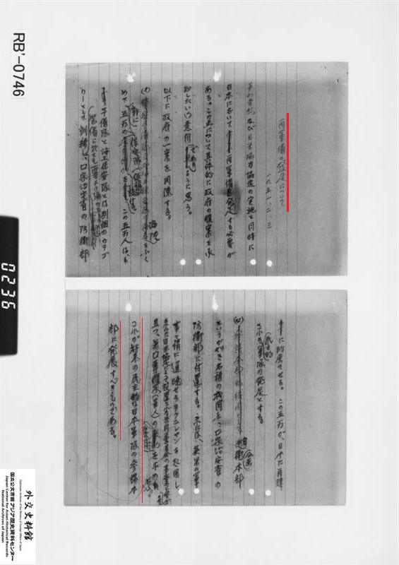 「21 2月3日先方に交付した「再軍備の発足」 昭和26年2月3日」JACAR(アジア歴史資料センター)Ref.B25091074800、対日平和条約関係 第1次ダレス来訪関係(第1次交渉) 第1巻(B’.4.0.0.1-3_001)(外務省外交史料館)、3画像目